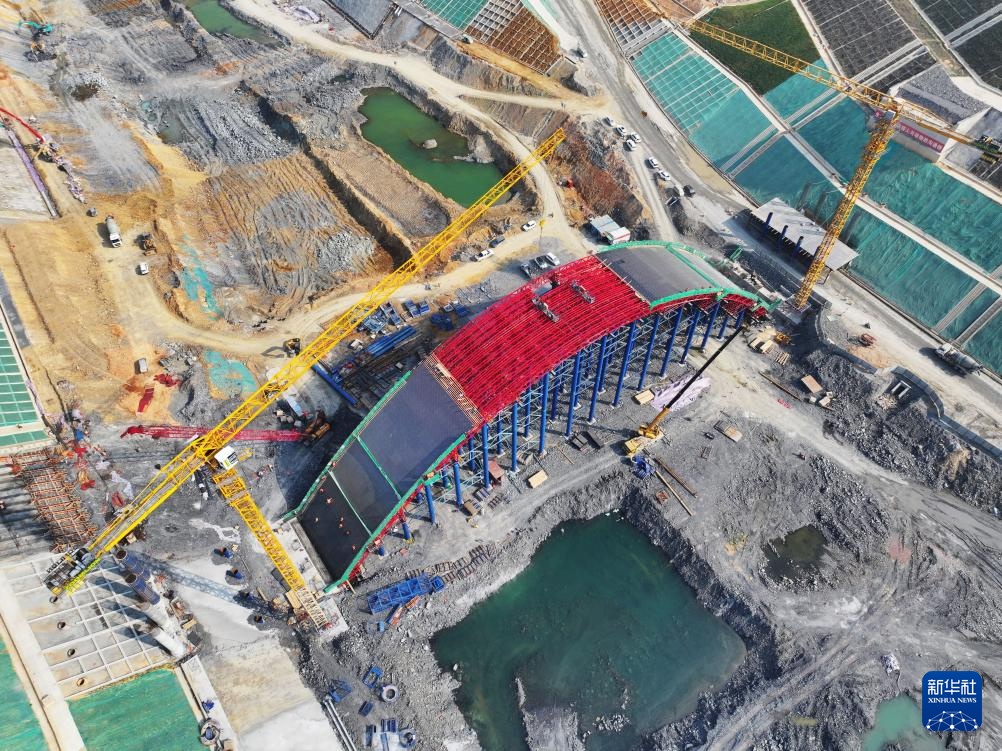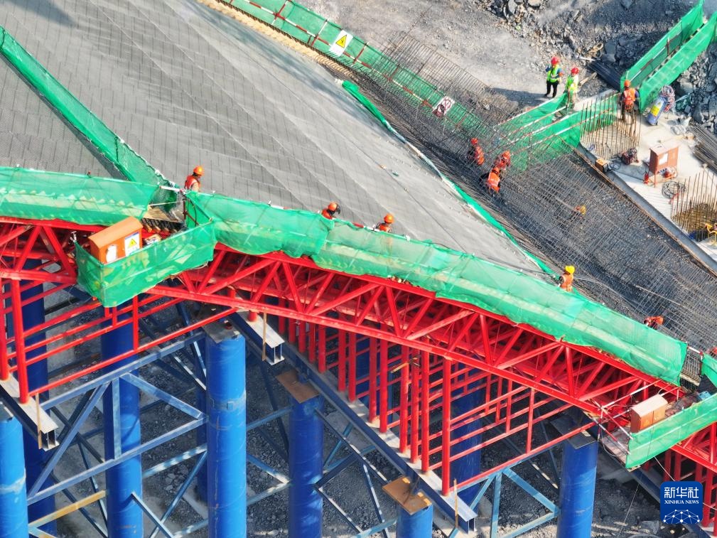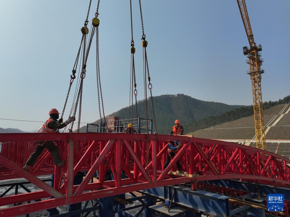 目前,广西平陆运河专用动物通道桥主桥拱座已经施工完成,钢管桩支架和钢拱架已经搭设完成,正在铺设底模和绑扎钢筋。