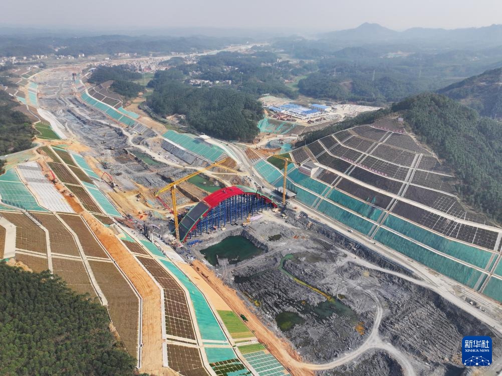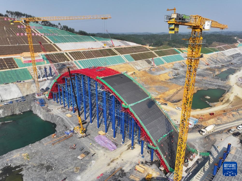 这是广西平陆运河专用动物通道桥施工现场(3月20日摄,无人机照片)。