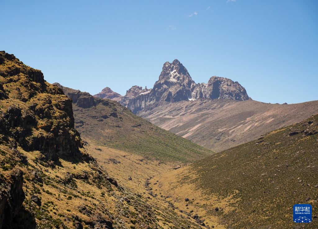 这是3月14日在肯尼亚山国家公园拍摄的最高峰巴蒂安山附近景色。