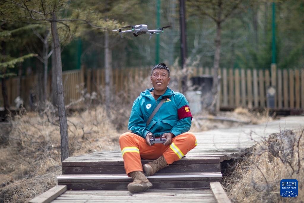 扎西曲培在南山公园操控无人机巡山(2025年3月20日摄)。