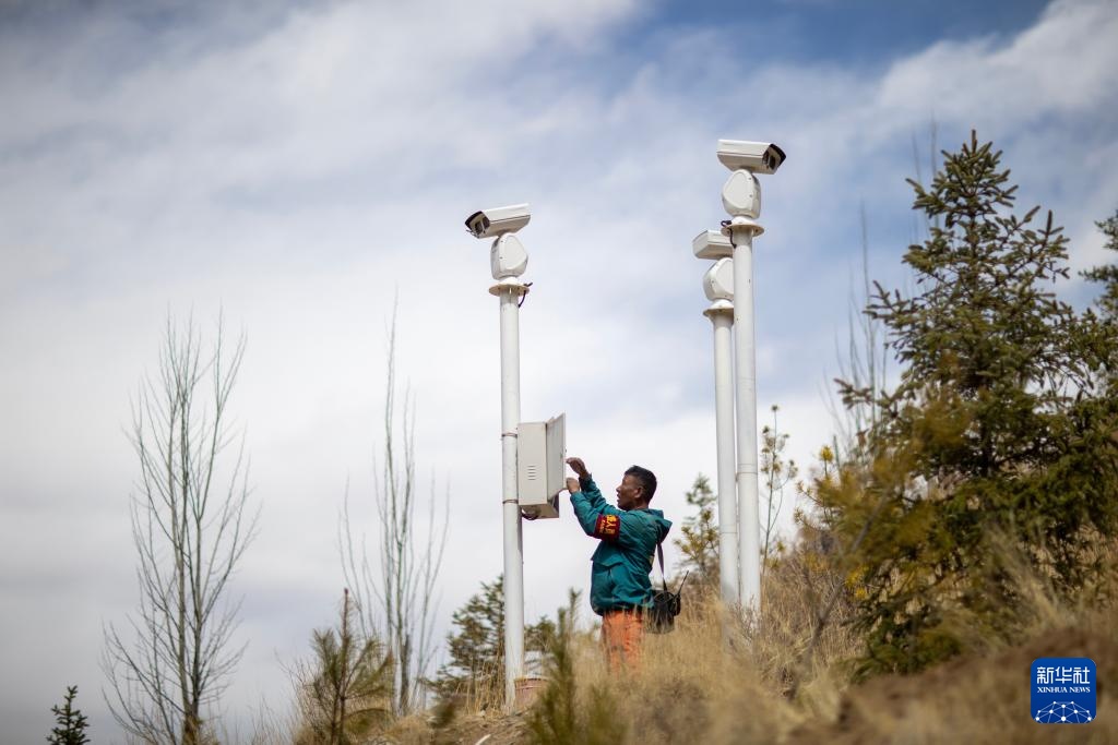 扎西曲培在南山公园检修消防监控装置(2025年3月20日摄)。