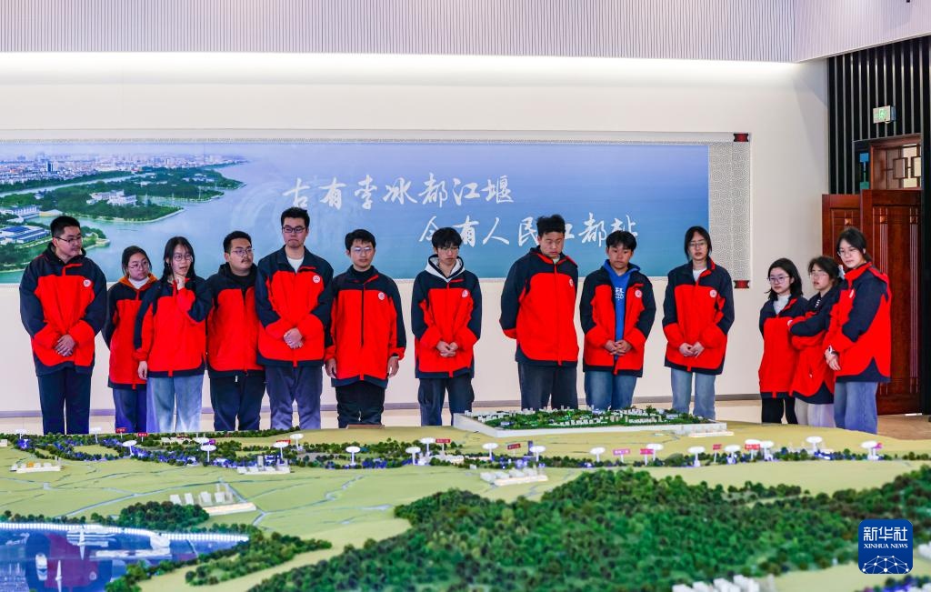3月21日,在江苏省江都水利枢纽工程管理处,江苏省江都中学学生参观南水北调东线工程规划馆。