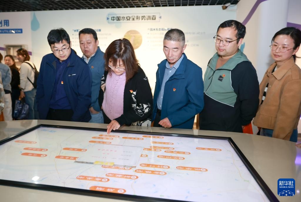 3月21日,观众在湖北省武汉节水科技馆参观节约用水相关展览。