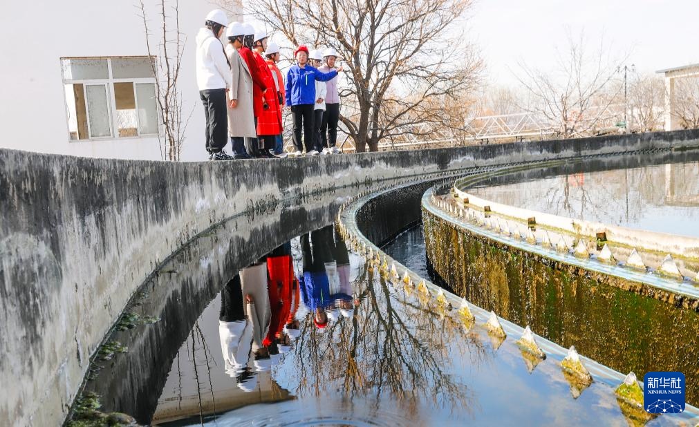 3月21日,河北省遵化市文化路街道居民在污水处理厂参观。