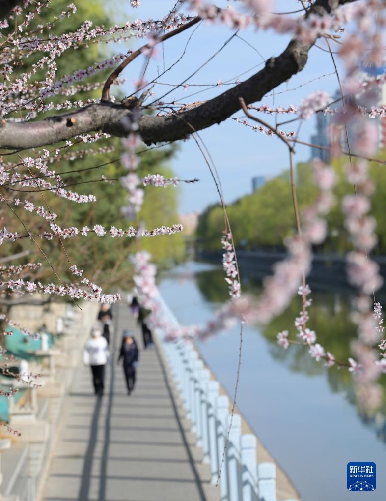 3月21日在北京市西城区白纸坊桥护城河畔拍摄的桃花。
