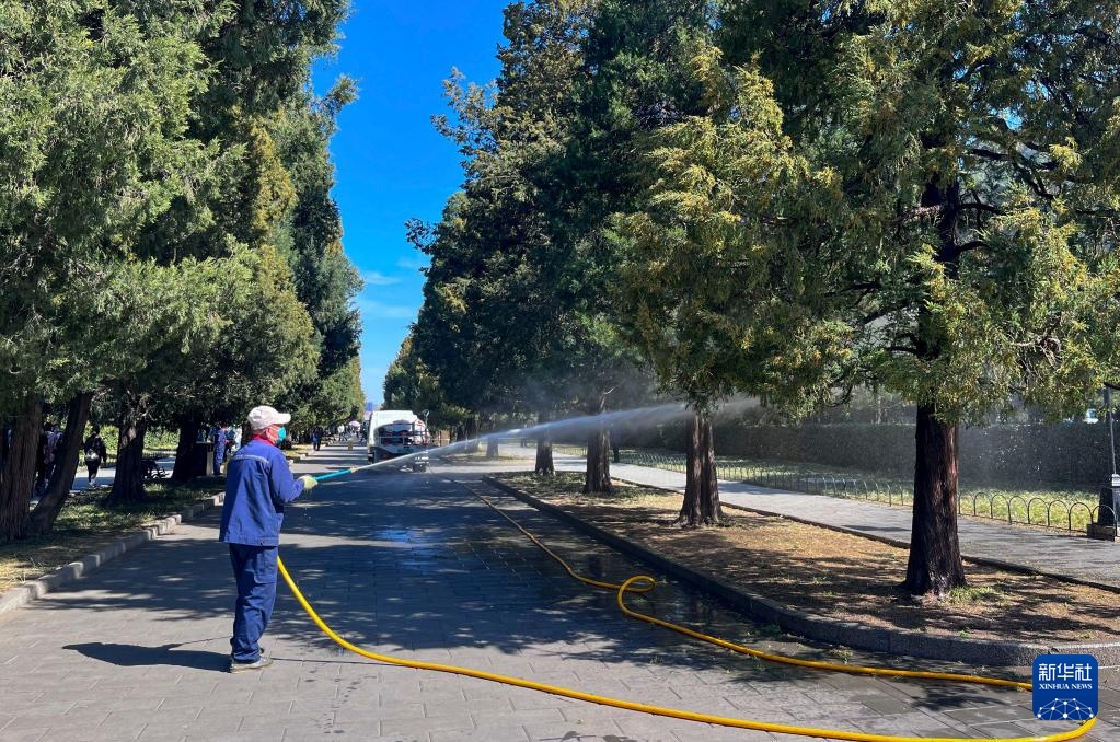 据天坛公园工作人员介绍,为降低花粉浓度,公园已对主干道两侧、花粉浓度高的游览区和柏树区采取了不定时清水高压喷雾、喷洒冲洗等方式,促进花粉沉降,并对地面花粉进行清理。