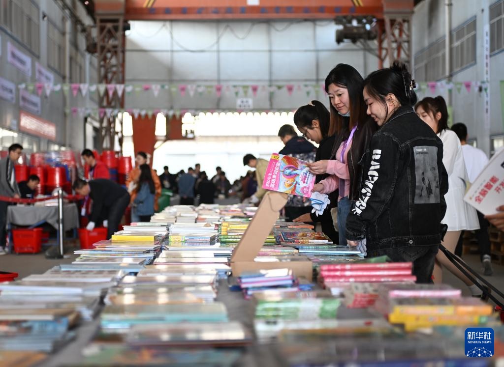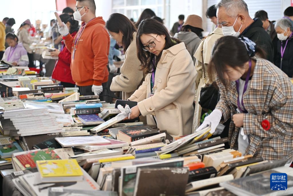 3月22日,市民在书市上挑选图书。