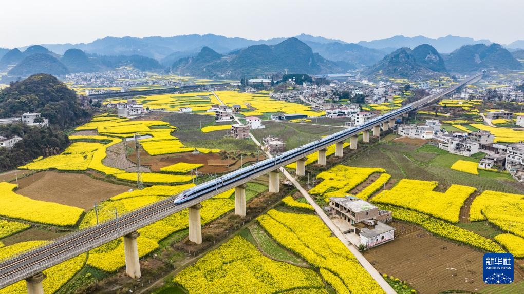 仲春时节,贵州省多地油菜花竞相绽放。一趟趟列车在油菜花海之中穿行,勾勒出黔贵大地朝气蓬勃的春日景象。