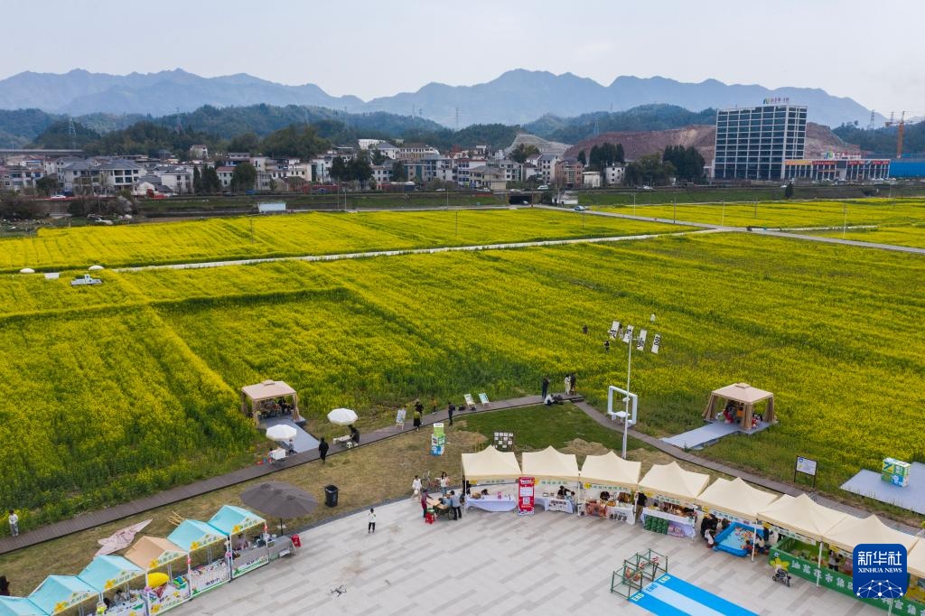 近期,浙江省建德市更楼街道城南城市田园的油菜花竞相开放,一场春日花田市集也在花田边开启,游客们支起帐篷天幕在田间赏花海、品美食,尽享春光。