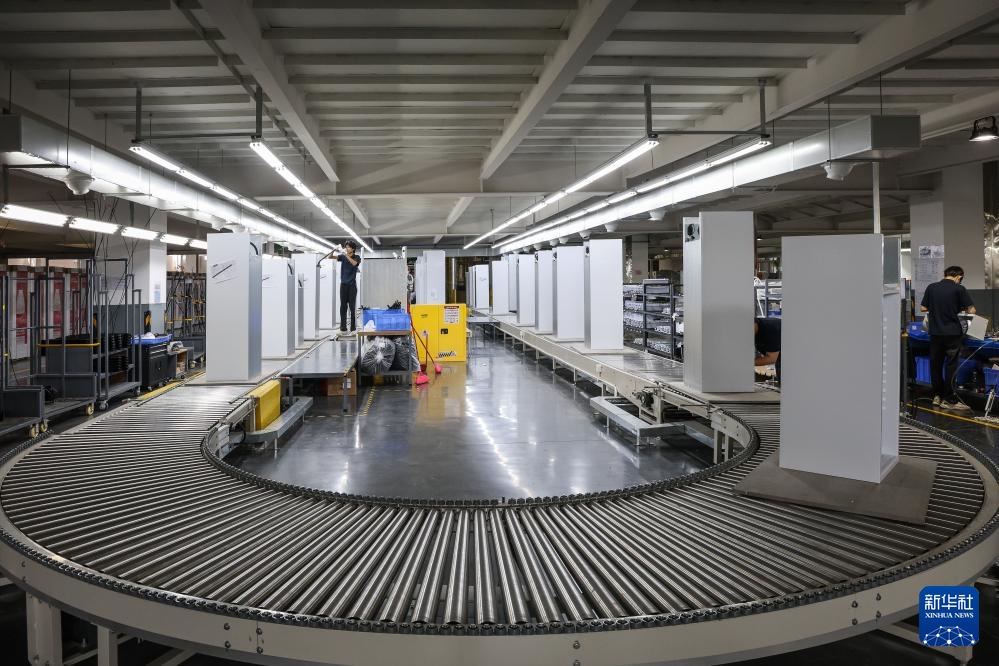 西科冷链江门制造基地的不同型号商用冷链设备在同一条产线上共线生产(3月22日摄)。