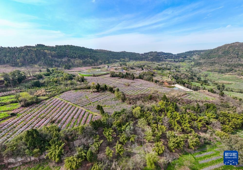 这是3月23日在四川省成都市龙泉山拍摄的桃花基地(无人机照片)。