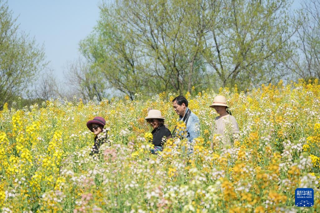 3月24日,游客在西溪湿地彩色油菜花海中徜徉。
