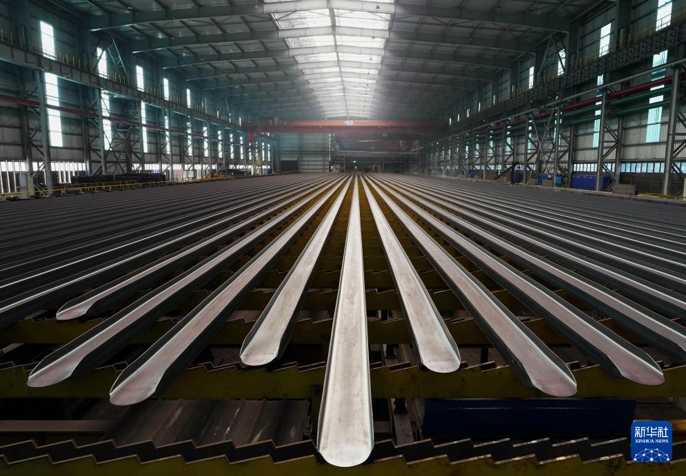 这是唐山市海港经济开发区一家钢铁企业刚轧制出炉的槽型钢(3月24日摄)。