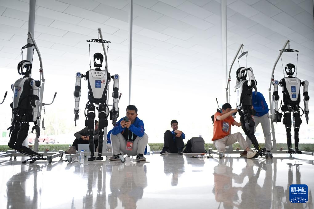 3月26日,工作人员在中关村国际创新中心调试夸父机器人。