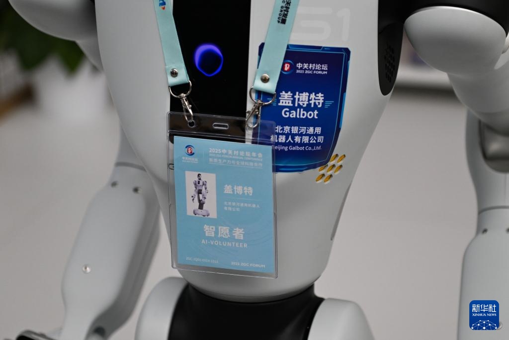 3月26日,在中关村国际创新中心,一款盖博特机器人佩戴着“智愿者”的证件。