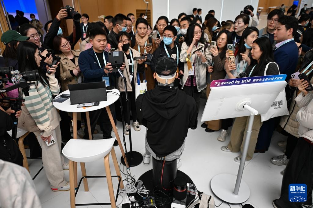 这是3月26日在中关村国际创新中心拍摄的AIGC互动体验装置。