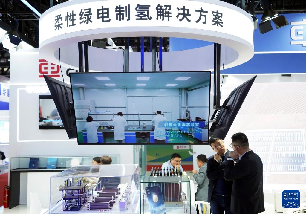 3月26日,参观者在2025中国国际清洁能源博览会上了解展出的氢能源制造方案。