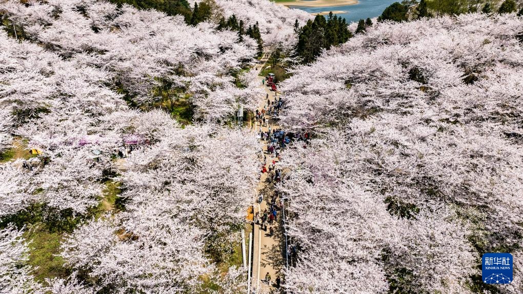 近日,贵州省贵安新区樱花园内的2.4万亩樱花迎来盛花期,吸引各地游客前来赏花游玩。