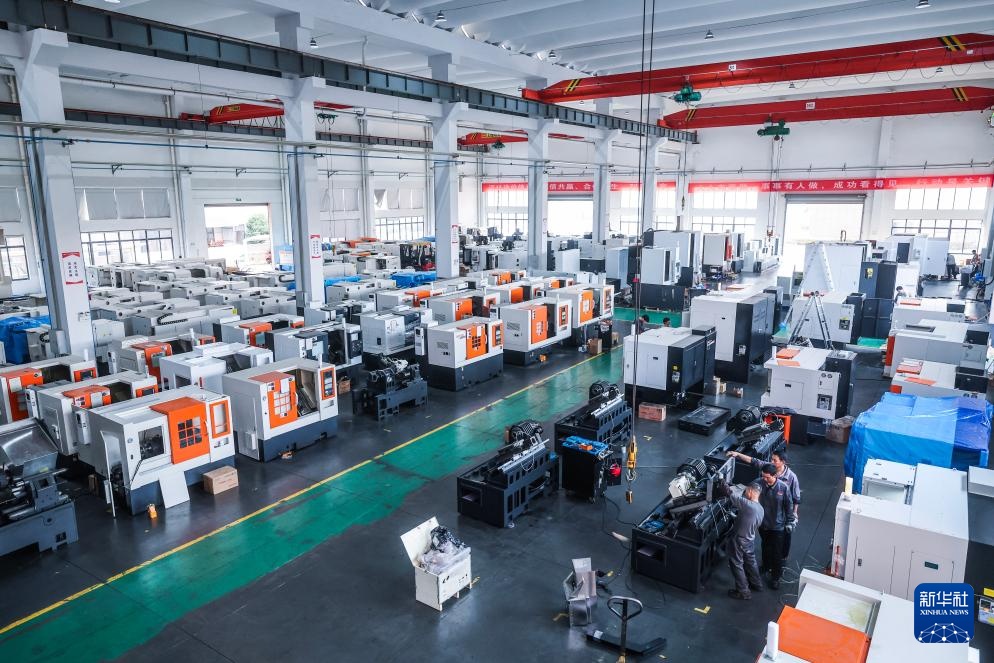 3月26日,在位于嘉兴南湖区大桥镇的浙江迈兴途智能装备股份有限公司车间内,工作人员在生产组装智能化机床。
