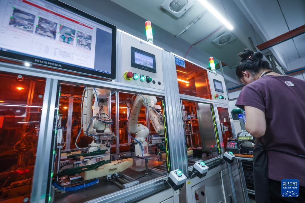 3月26日,在位于嘉兴南湖区大桥镇的浙江迈兴途智能装备股份有限公司车间内,工作人员在查看生产设备。