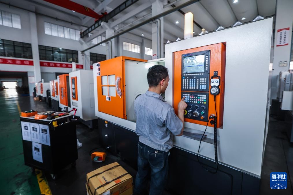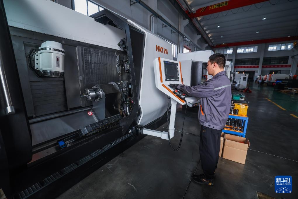 3月26日,在位于嘉兴南湖区大桥镇的浙江迈兴途智能装备股份有限公司车间内,工作人员对即将出厂的智能化机床进行系统调试。