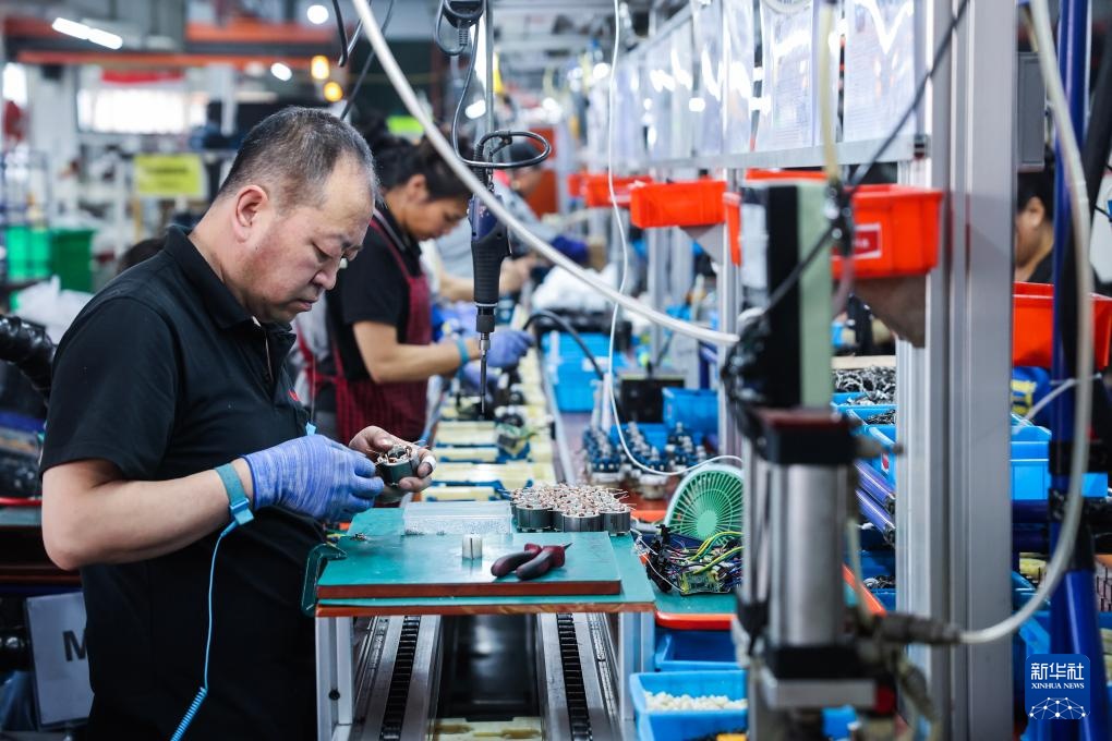 3月26日,在位于嘉兴南湖区余新镇的浙江亚特电器股份有限公司生产车间,工作人员对出口的园林工具进行组装。