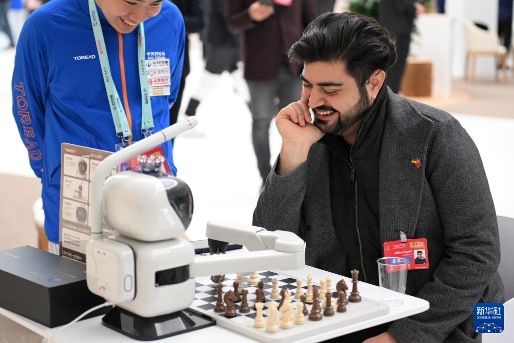 3月27日,与会嘉宾在与一款机器人对弈。