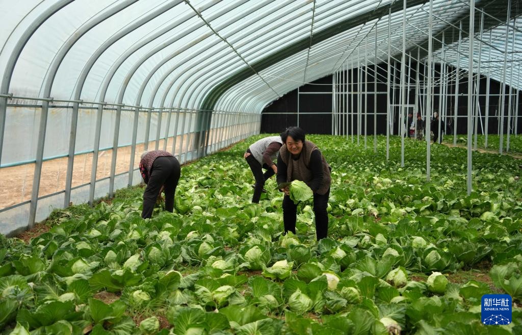 近日,山东省新泰市刘杜镇的春季大棚卷心菜进入收获期,棚内棚外处处忙碌景象。