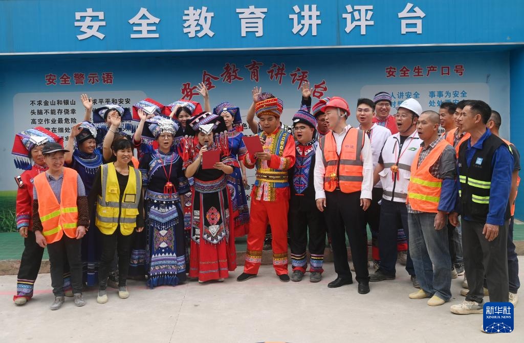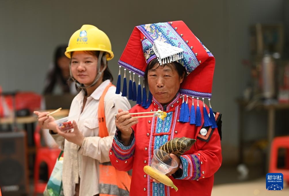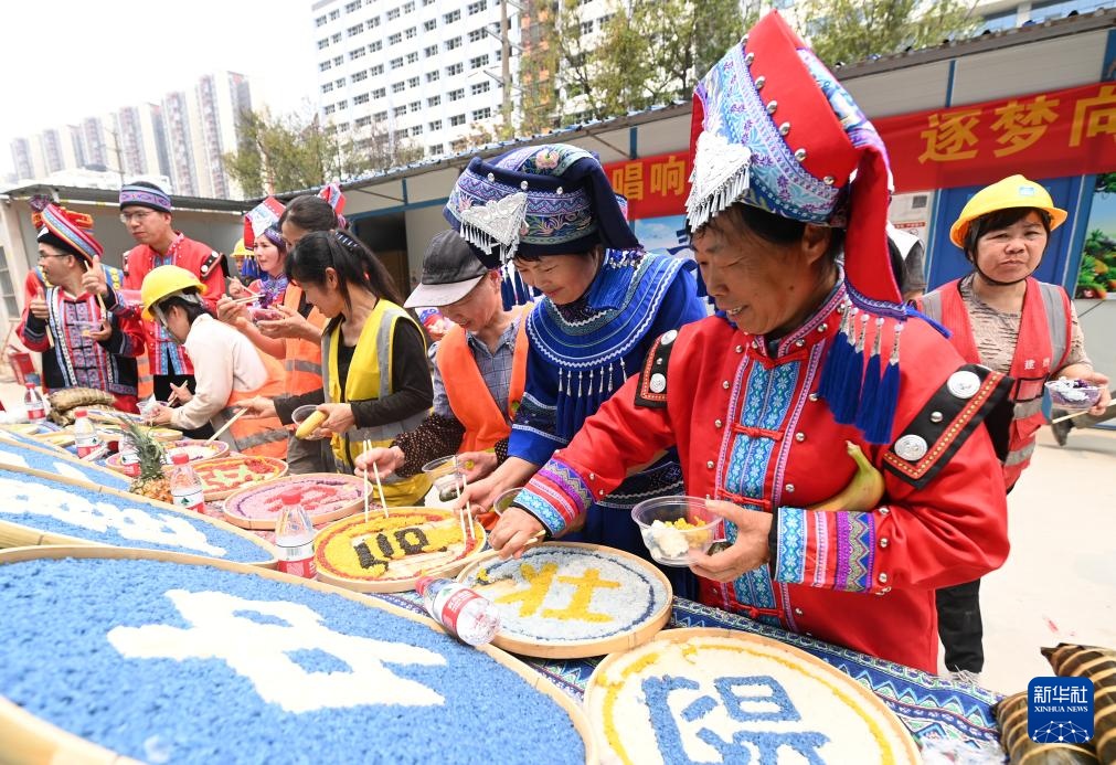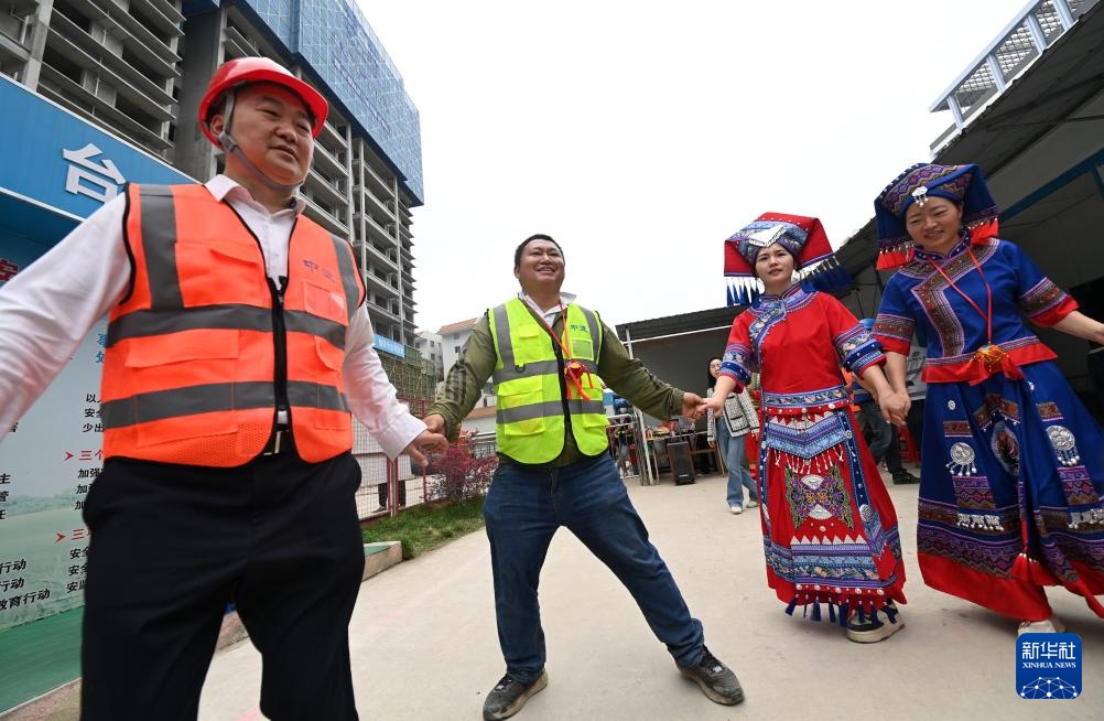当日,在广西南宁市明秀东路一处建设工地上,中建三局二公司举行“壮韵同心 安全同行”活动,工作人员们通过唱歌跳舞、分享美食等形式,喜迎“三月三”传统节日的到来。