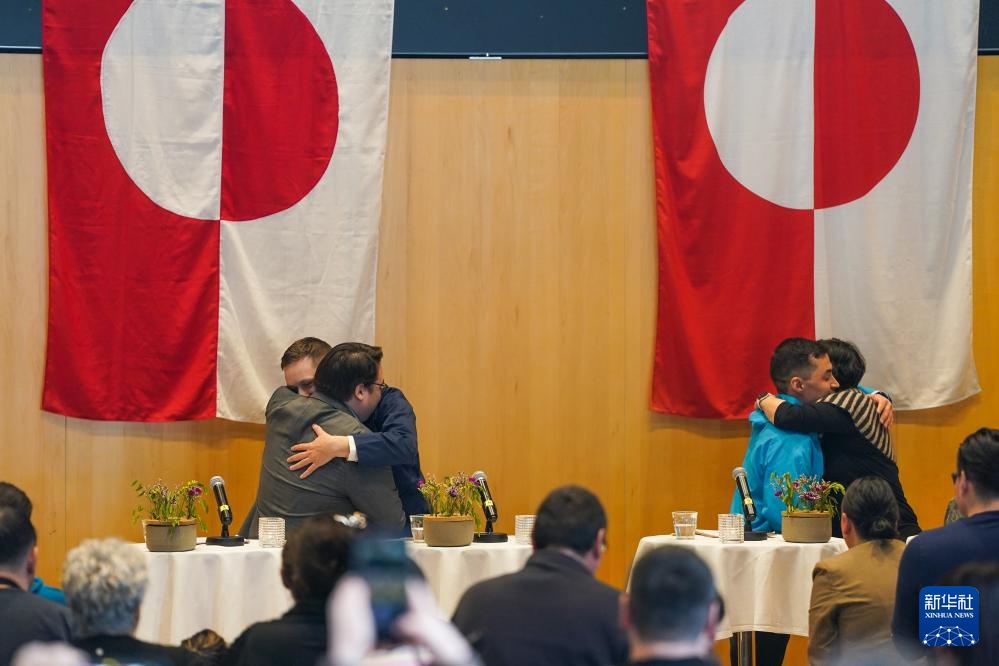 这是3月28日在丹麦自治领地格陵兰岛首府努克拍摄的新政府成立现场。