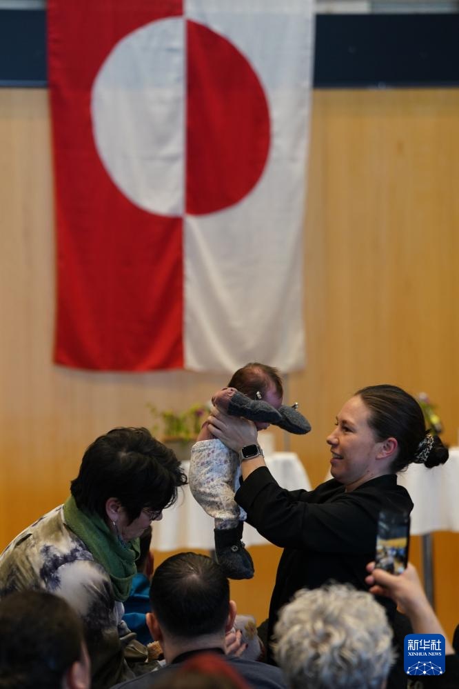 3月28日,在丹麦自治领地格陵兰岛首府努克的新政府成立现场,一名婴儿被妈妈举起。