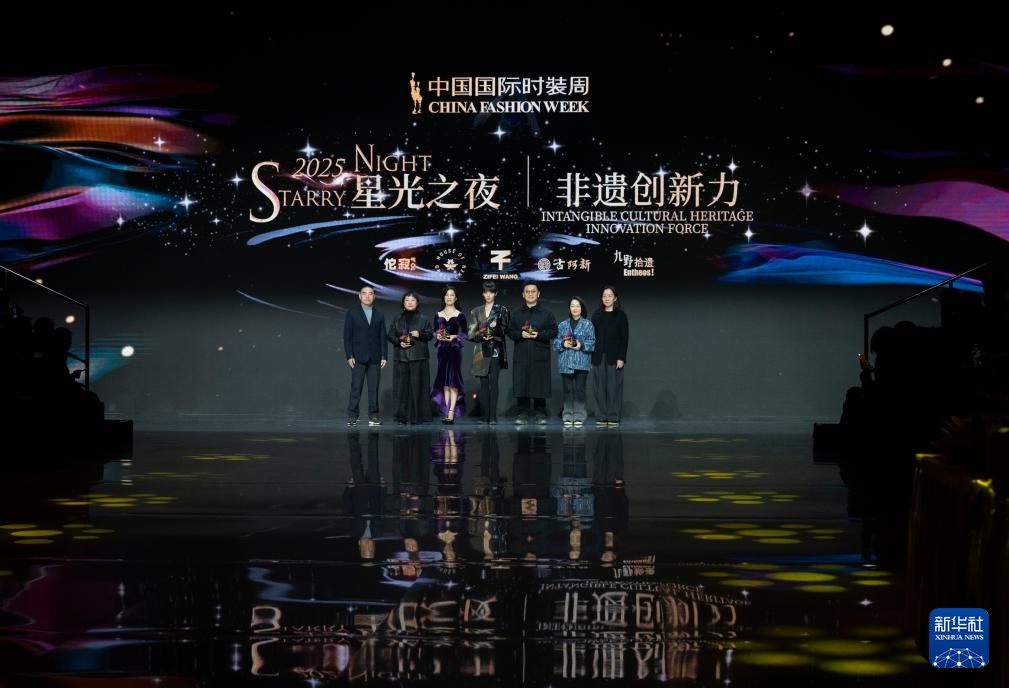 3月28日,在北京798·751园区举行2025中国国际时装周(春季)星光之夜活动上,非遗创新力获得者上台领奖。