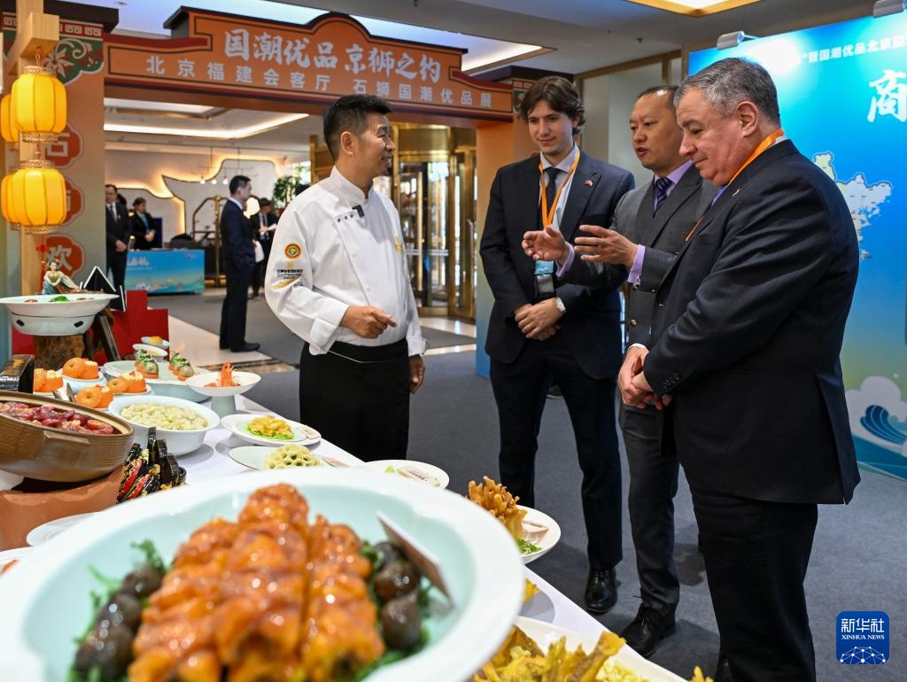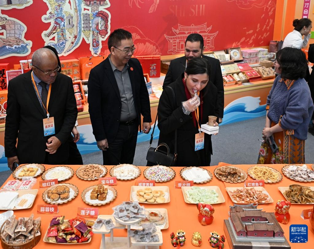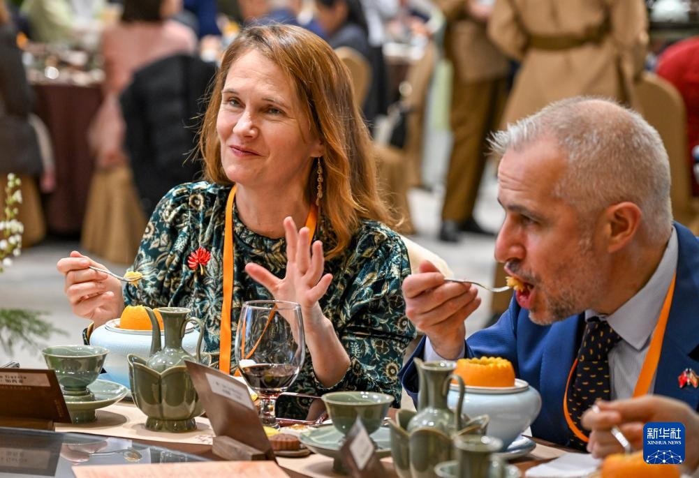 当日,来自希腊、黑山、巴拿马等25个国家的驻华使节参加在北京福建大厦举办的北京福建会客厅“世遗泉州 味连五洲”活动,他们在现场听南音、品香茗、尝美食,观看非遗表演,感受海丝文化。
