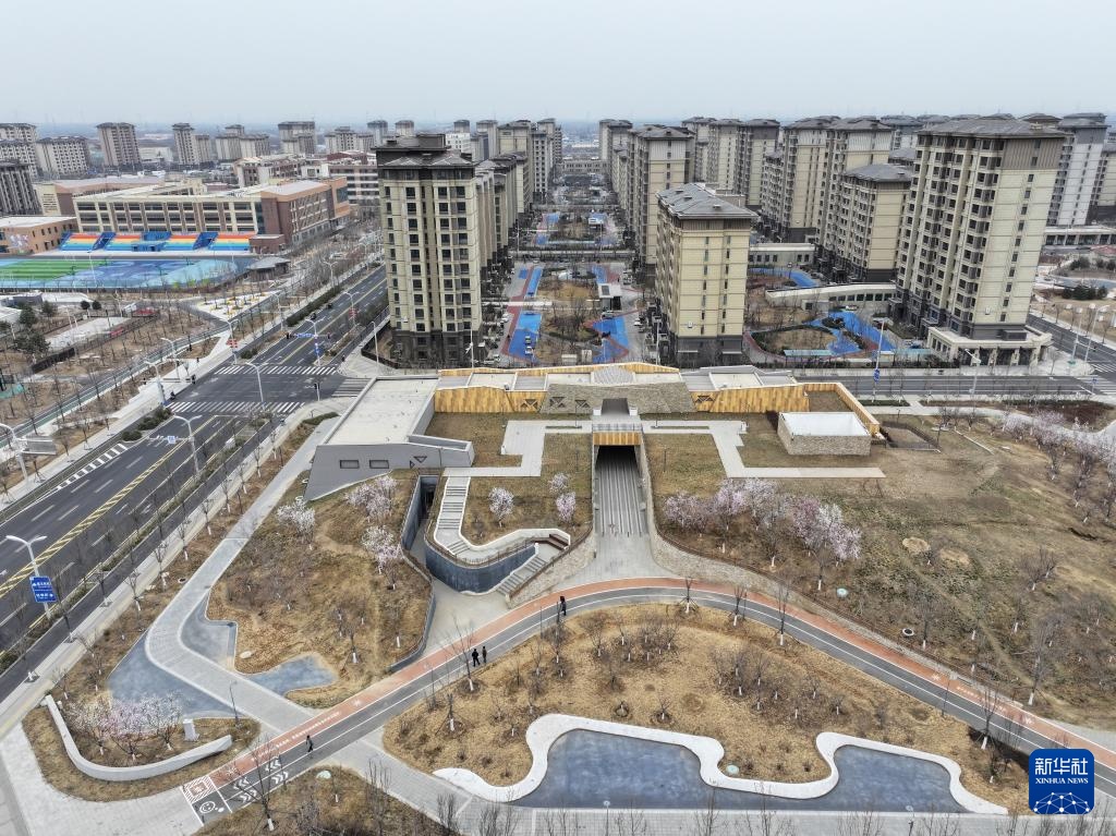 这是雄安新区容西片区“桃源梦境”主题变电站外景(3月14日摄,无人机照片)。雄安新区的变电站大都化身主题公园融入城市景观,通过隐藏主变压器、降低设备噪音等设计,将“邻避设施”转化为“邻里景观”。