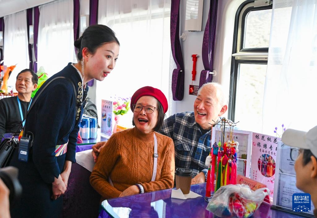 3月28日上午,“大美青海 幸福西藏”入藏旅游专列抵达西藏林芝站。专列于26日从青海出发,来自北京、上海、广东等全国十余个省区市的300余名游客,沿途领略了青藏高原的盐湖、雪山、草原等景观地貌,开启了踏青赏花、寻梦高原春日之旅。