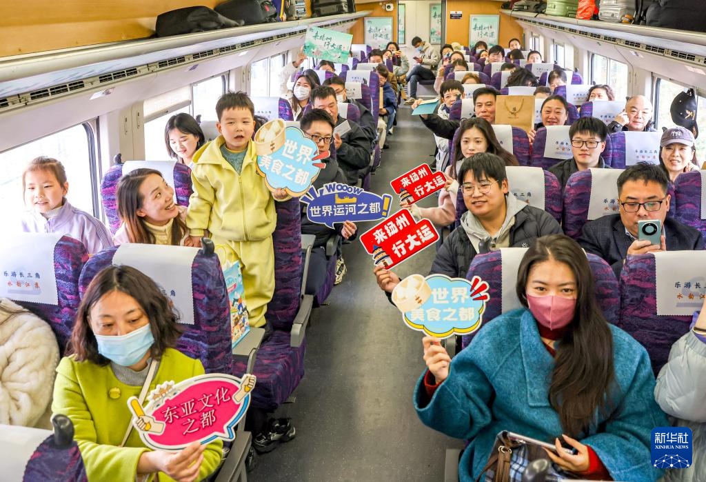 3月29日,旅客乘坐“水韵江苏”主题旅游列车。