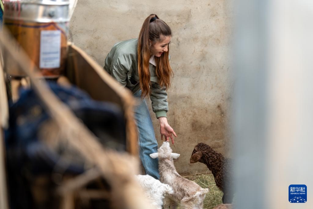 3月21日,在新疆塔县塔什库尔干乡萨热吉勒尕村,阿曼古丽·瓦比克喂养小羊。
