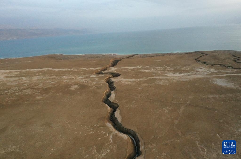 随着死海水位连年下降,地下盐层被淡水侵蚀,死海沿岸的地面大范围塌陷开裂,沟壑纵横蔓延。