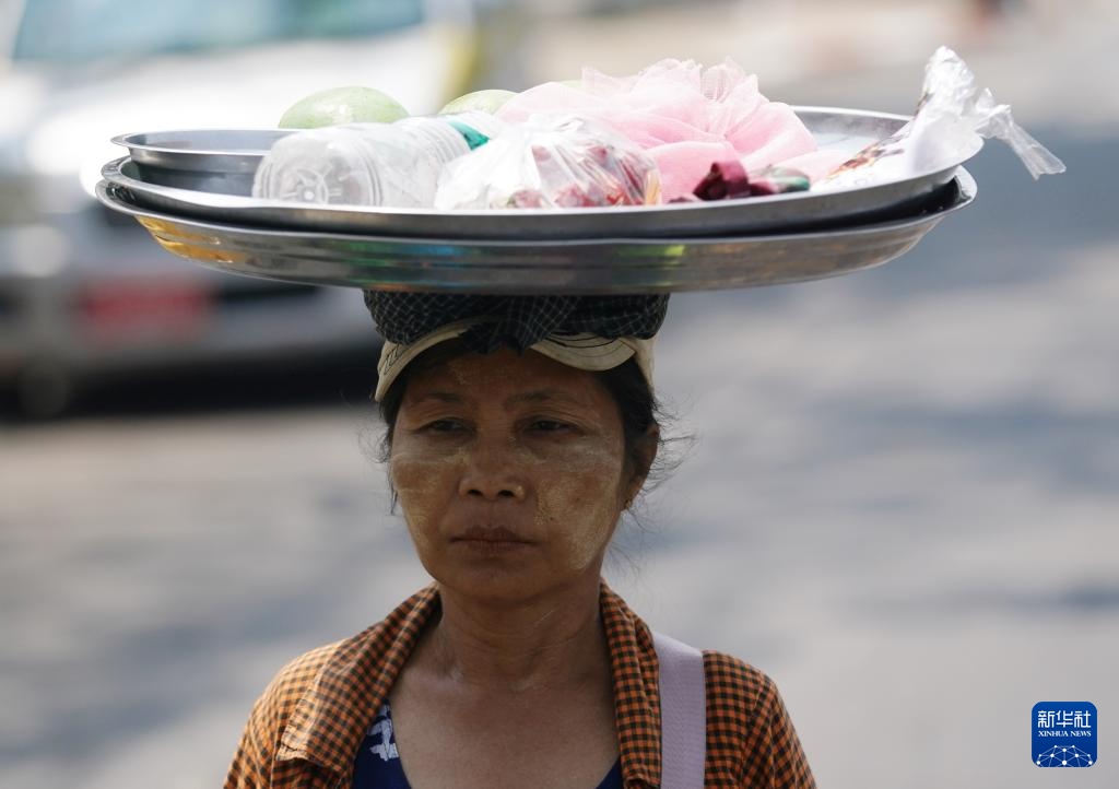 这是3月30日拍摄的缅甸仰光大金塔附近的小贩。