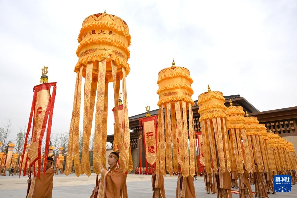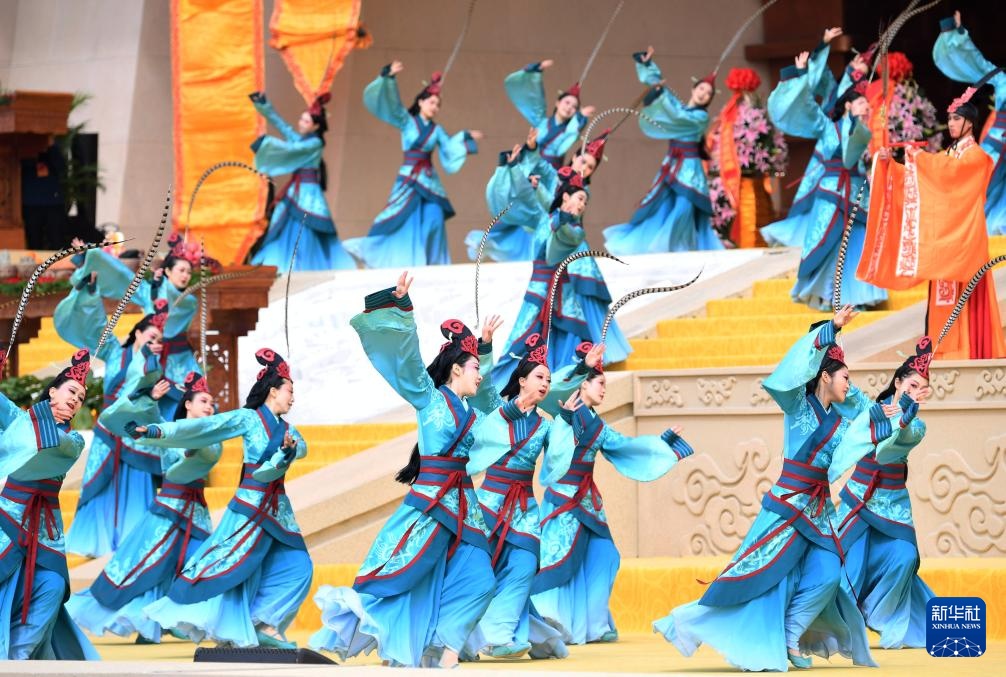 3月31日,演员在乙巳年黄帝故里拜祖大典上表演。
