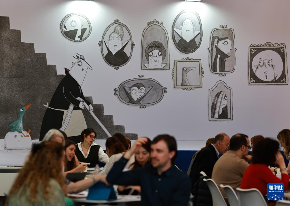 3月31日,在意大利博洛尼亚,人们在第62届博洛尼亚童书展中国出版代表团展区参加活动。