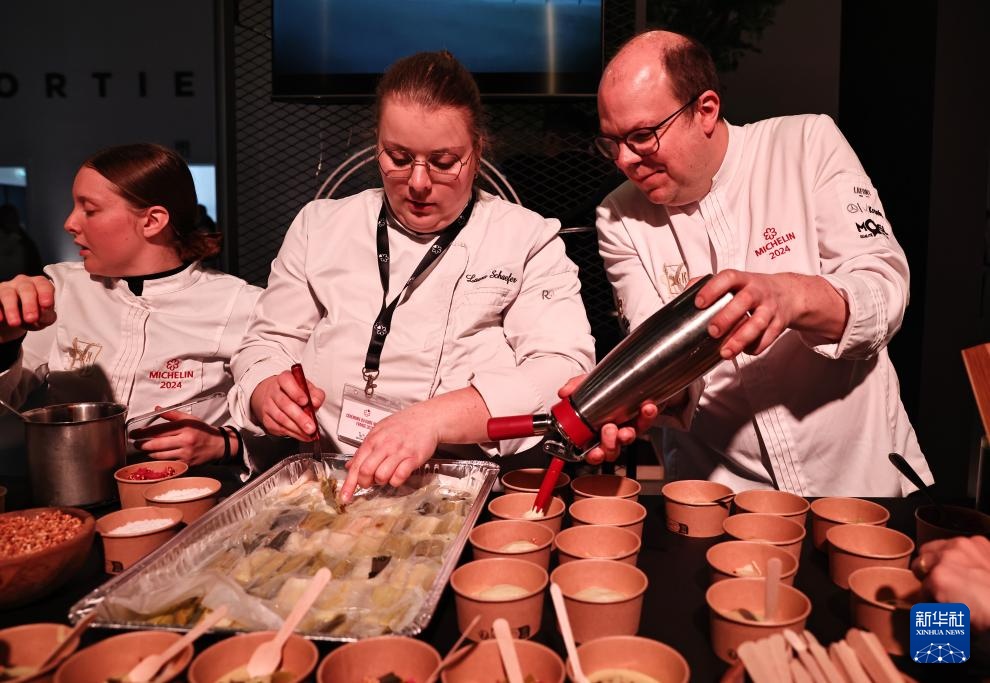 3月31日,在法国梅斯市,工作人员在2025《米其林指南》法国版发布典礼现场制作美食。