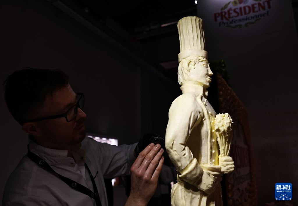 3月31日,在法国梅斯市,工作人员在2025《米其林指南》法国版发布典礼现场用黄油制作厨师像。