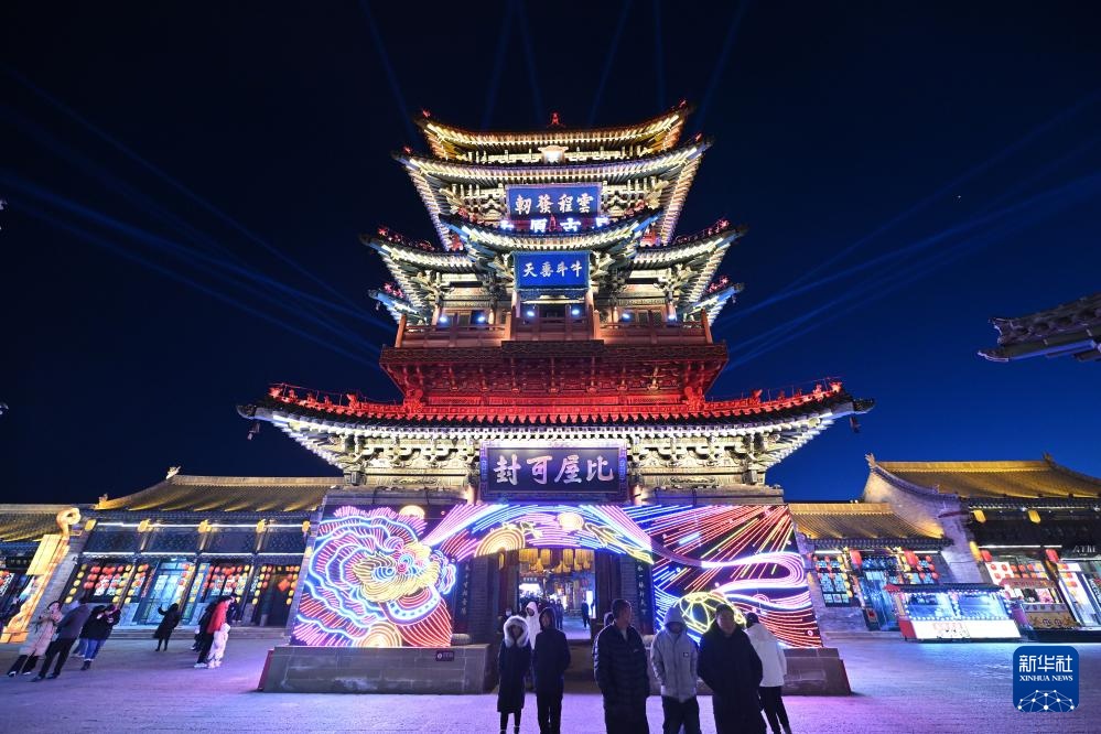游人在太原市晋源区太原古县城游览(2月5日摄)。