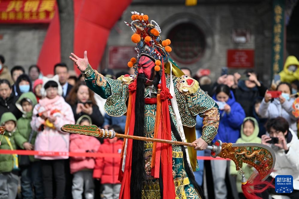 在太原市迎泽区庙前街,市民在文化展演活动上欣赏演出(2024年2月23日摄)。