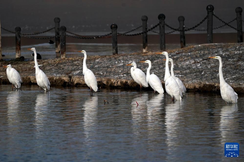 白鹭在太原市汾河栖息(1月1日摄)。