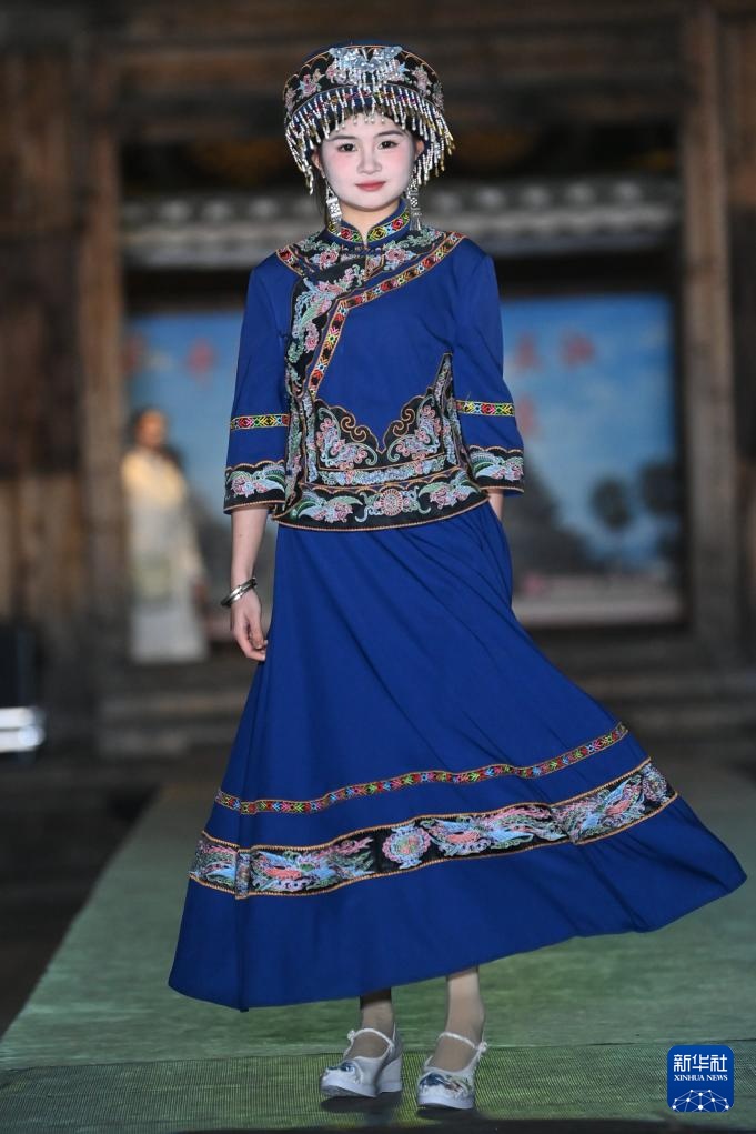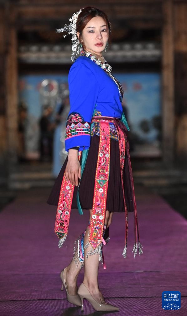 “广西三月三·八桂嘉年华”活动期间,广西柳州市三江侗族自治县侗族群众穿着民族服饰依次走上T台,展现侗绣独特民族风情及时尚变化,庆祝传统佳节。
