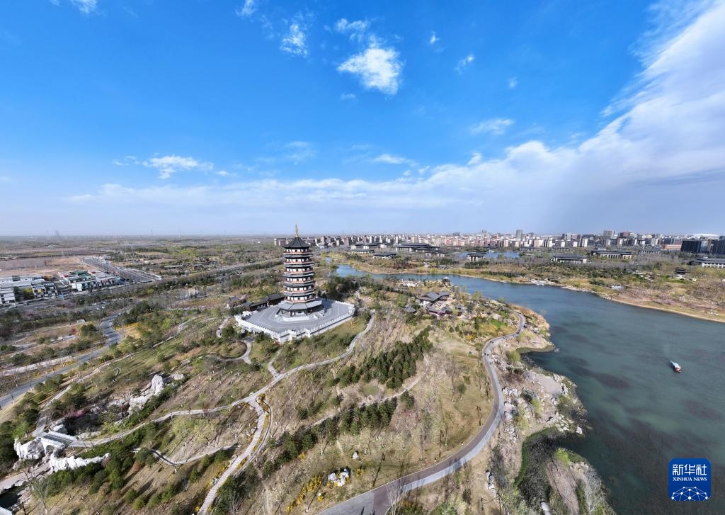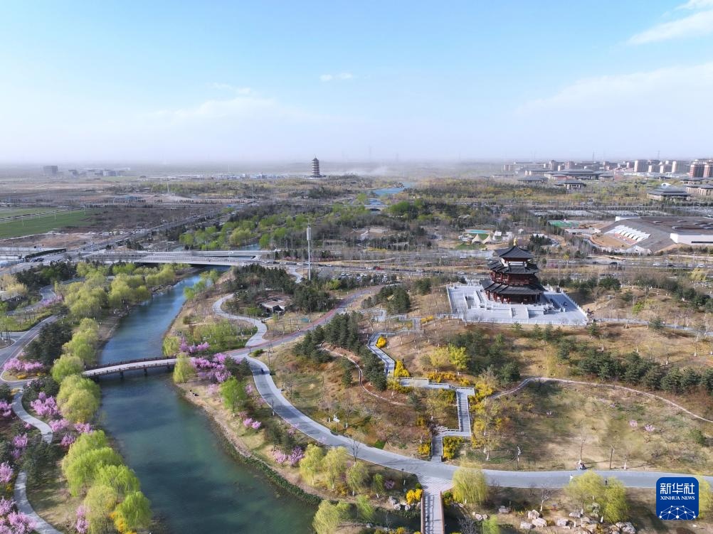 4月1日拍摄的雄安新区悦容公园(无人机照片)。