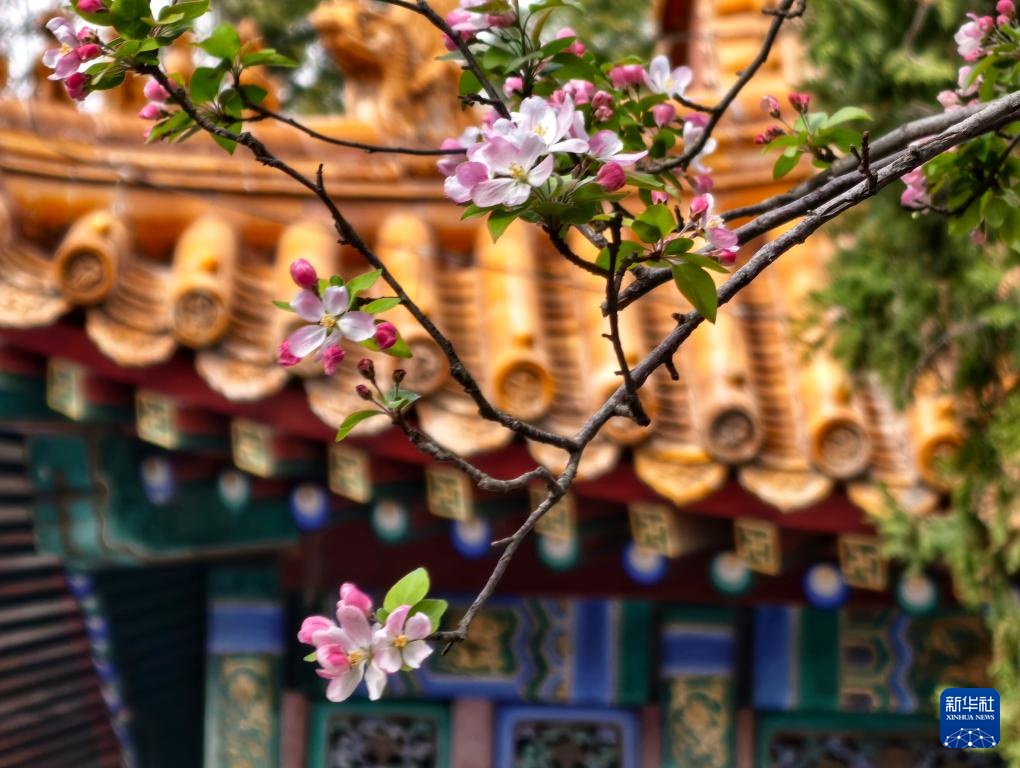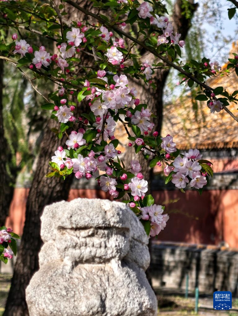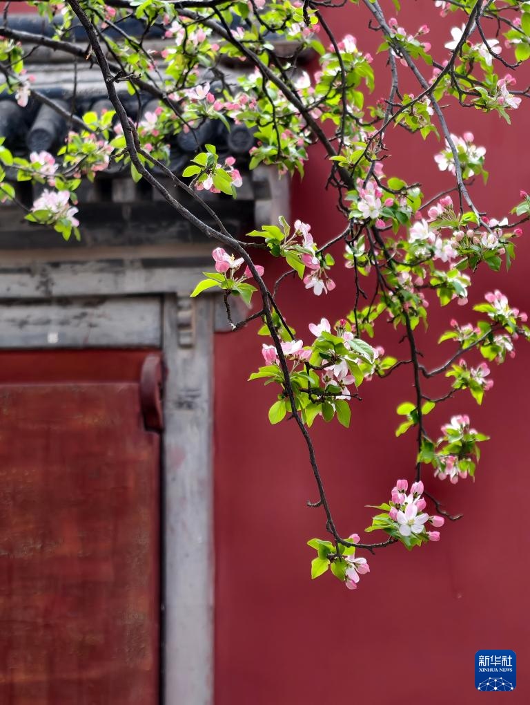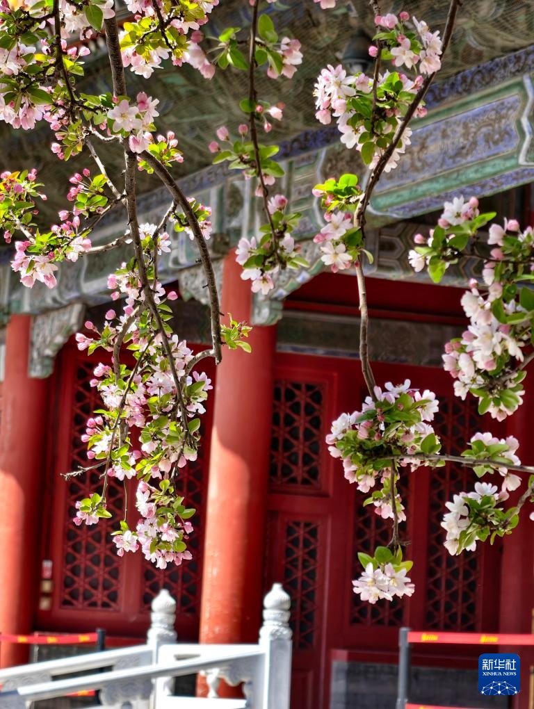 故宫慈宁宫花园内海棠盛开(4月1日摄,手机照片)。