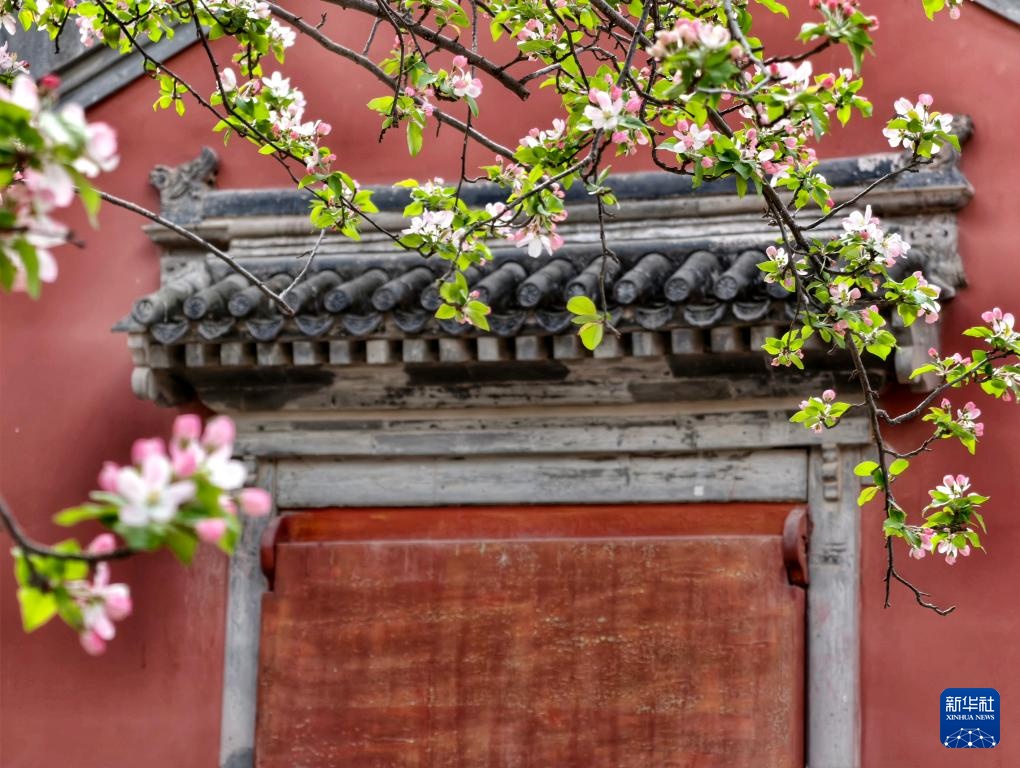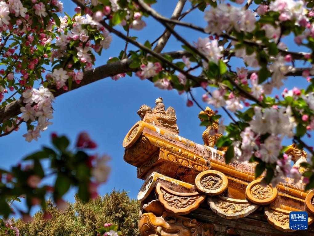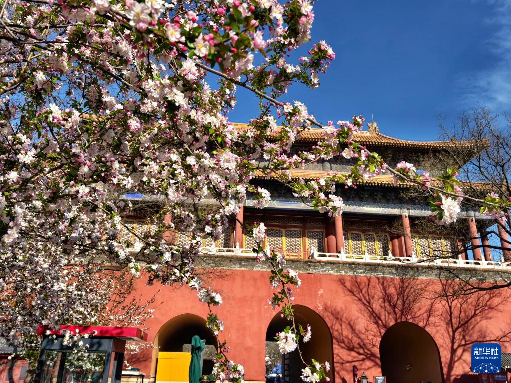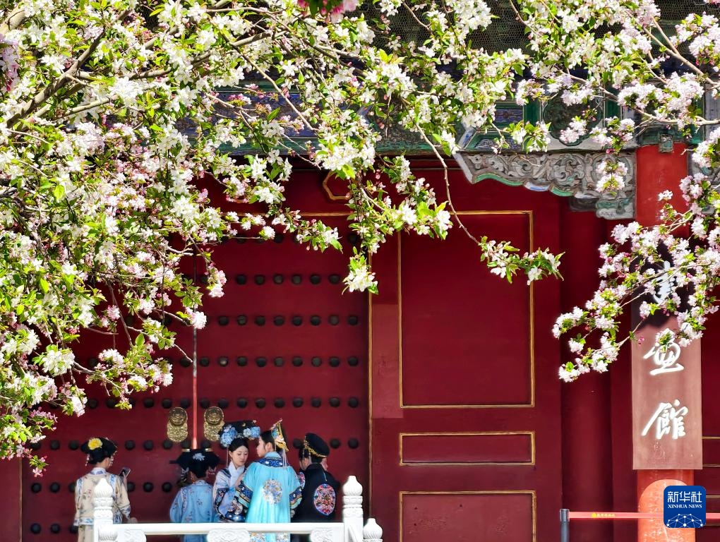 故宫慈宁宫花园内海棠盛开(4月1日摄,手机照片)。